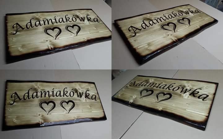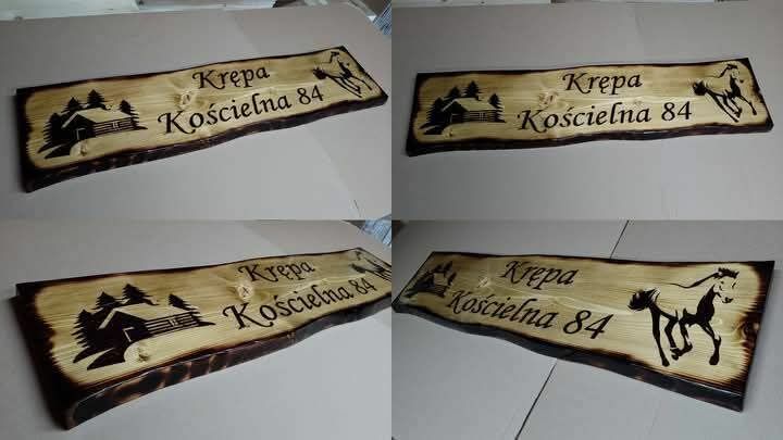 Wypalanie na drewnie szyldów ozdobnych od adresowych do większych reklamowych.Kontakt 888+-042==691