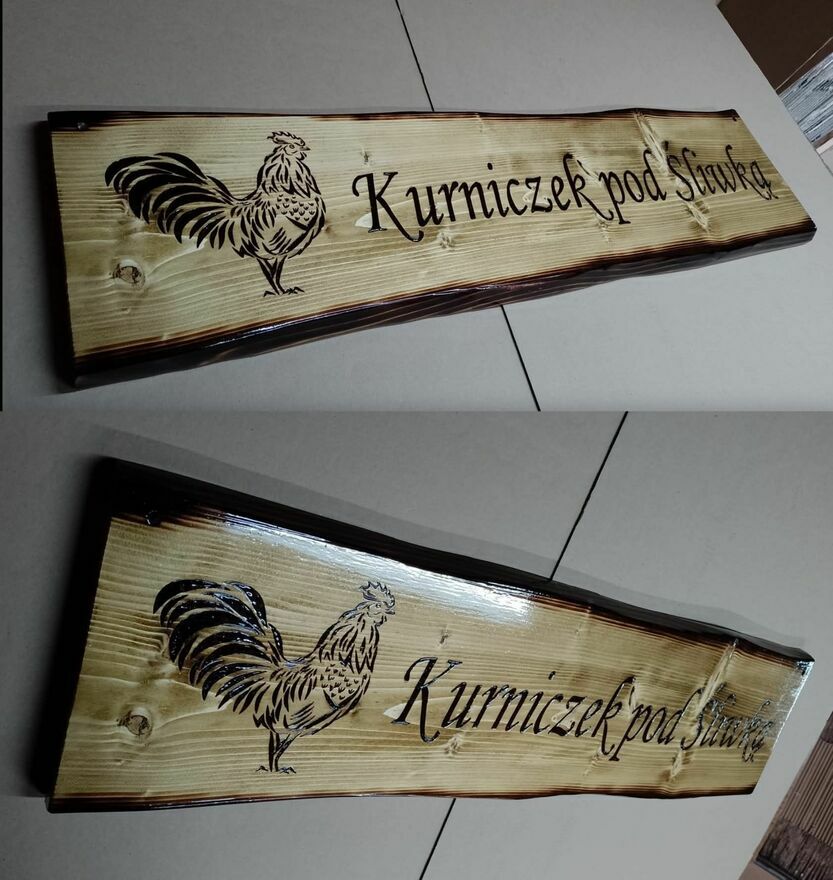 Witam. Nazywam się Piotr prowadzę swoją pracownię rękodzielnicza w której zajmuje się ręcznym wykonywaniem napisów oraz grafik na drewnie metoda pirografii. Projektuje napisy oraz wykonuje z projektów klienta nawet odrecznych. Wypalanie na drewnie szyldów ozdobnych od adresowych do większych reklamowych. Napisz wyśle cennik i wymiary.Są Państwo zainteresowani wykonaniem unikatowego szyldu to zapraszam do mnie